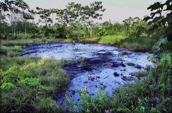 Muestra del estado en que quedó la amazonía ecuatoriana luego que la Texaco decidiera abandonar sus explotaciones petroleras.